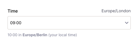The timezone being used by the Relay account is shown at the top right of the drop down. Below the dropdown, additional information relating to how you will experience this in your timezone is shown.